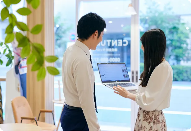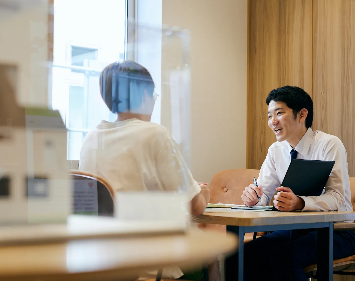 当社の担当が売主様と買主様の間に入り、不動産売却を支援します。当社では仲介部門と連携し、売却と仲介の専任担当のもと、高値売却を実現することができます。