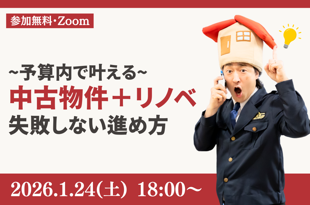 <オンラインセミナー開催>【1月24日(土)開催】予算内で叶える!”失敗しない”物件探し+リノベーションの進め方👮♂️