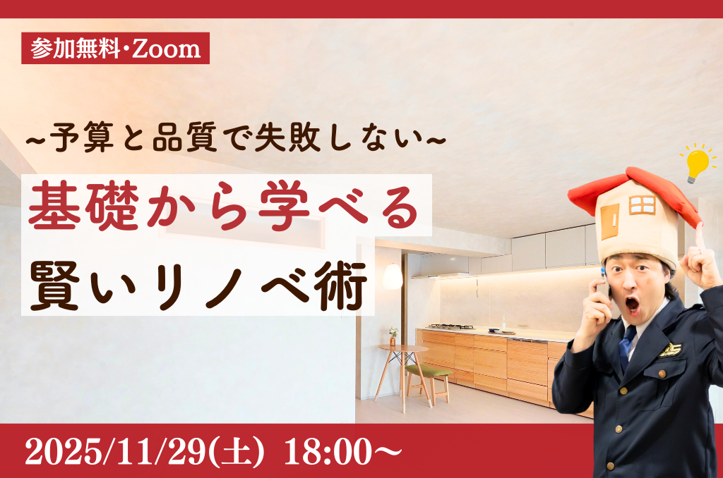 <オンラインセミナー開催>【11月29日(土)開催】”予算と品質”で失敗しない!基礎から学べる賢いリノベ術👮♂️