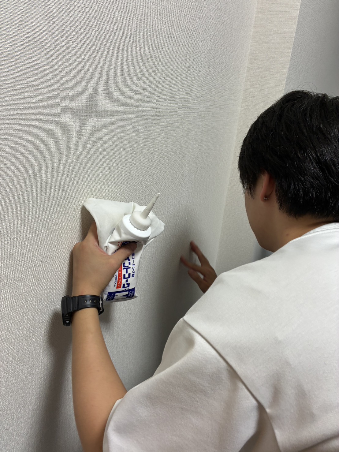 クロスの浮きを補修する奈須